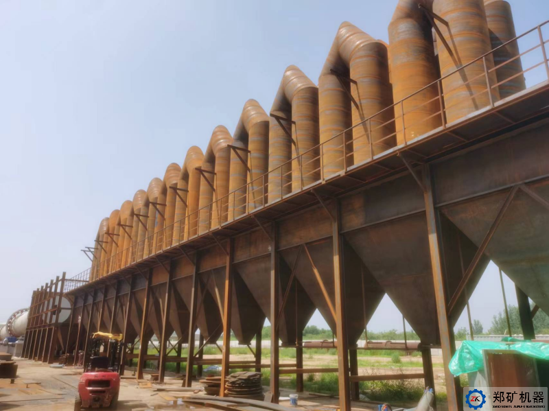 物料不斷向窯頭方向運(yùn)動,到達(dá)窯頭后,物料里面含有的鋅90%以上都被提取,剩余的殘渣落入到窯頭平臺下的冷水渣池內(nèi),通過裝載機(jī)定期外運(yùn)。