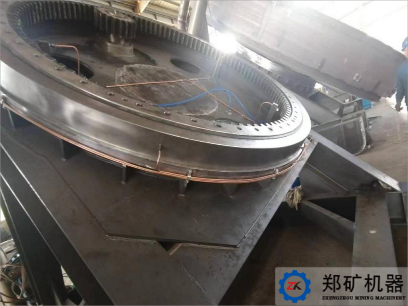 我司簽訂的湖北客戶120萬噸/年半水磷石膏綜合利用項目中圓盤造球機設(shè)備,其傳動部分不同于同系列一般造球機設(shè)備,利用回轉(zhuǎn)支撐裝置代替常規(guī)的齒輪組嚙合傳動,其安裝更簡單方便、易于操作封閉式的殼體,更容易維修,安全性、可靠性較高結(jié)構(gòu)更加緊湊,更耐用,動力源可選?;剞D(zhuǎn)支承是介于機架與上部回轉(zhuǎn)盤體間作相對回轉(zhuǎn)運動的傳力原件,用于支承上車體質(zhì)量和承受工作載荷,共內(nèi)座圈鏈接下機體,外座圈鏈接上盤體,內(nèi)座圈上的內(nèi)齒圈與回轉(zhuǎn)小齒輪嚙合。當(dāng)回轉(zhuǎn)齒輪轉(zhuǎn)動時,通過小齒輪帶動上盤體回轉(zhuǎn)。